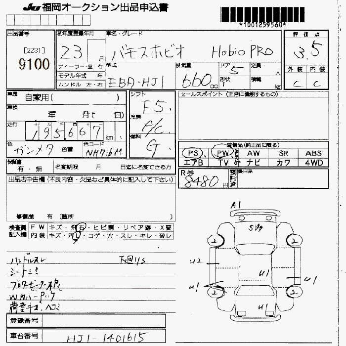 Статус не продан Лот 9100 Аукцион JU Fukuoka Дата аукциона 23.01.2026