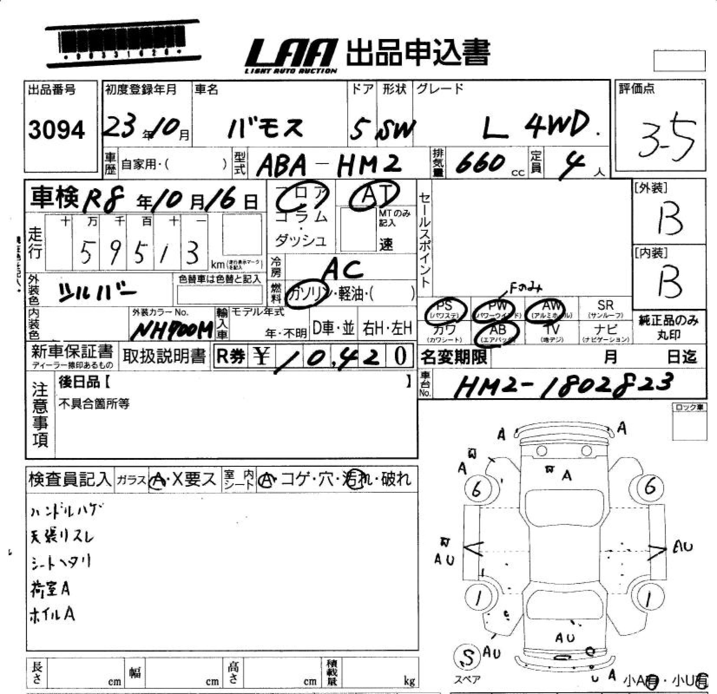 Статус выставлен на аукцион Лот 3094 Аукцион LAA Okayama Дата аукциона 24.10.2025