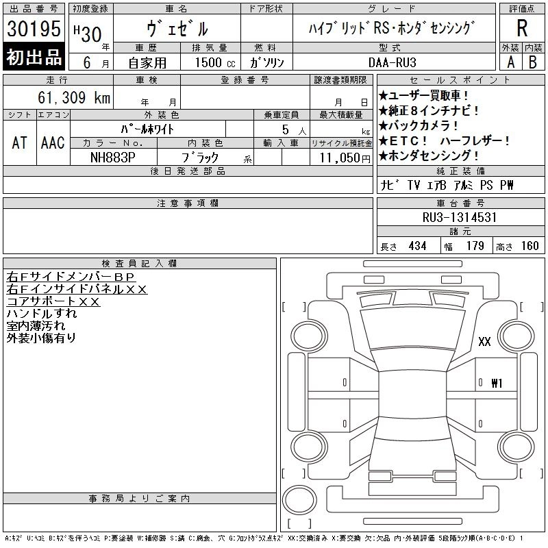 HONDA VEZEL 2018 г., лот № 30195