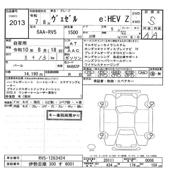 HONDA VEZEL 2025 г., лот № 2013