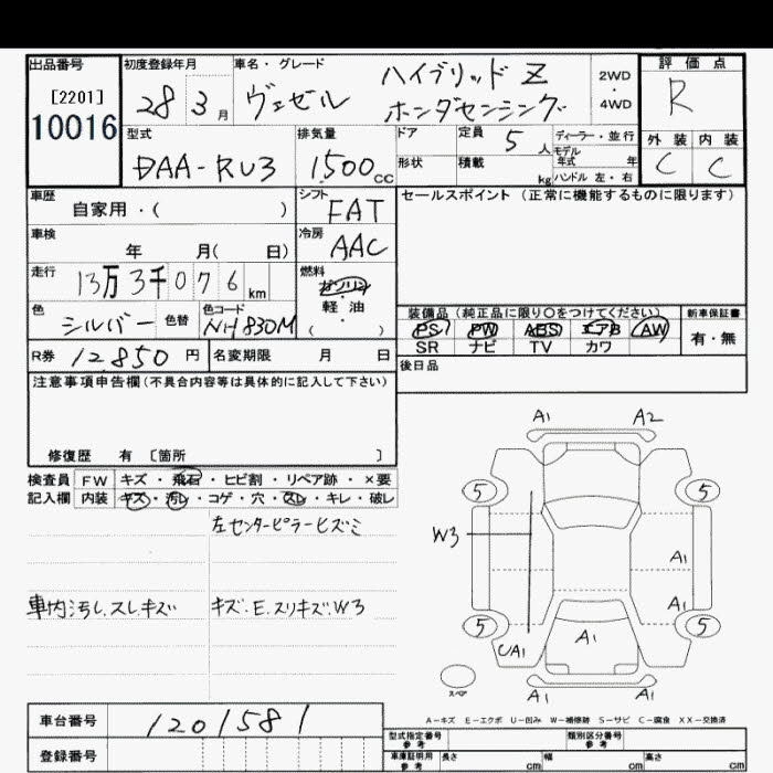 HONDA VEZEL 2016 г., лот № 10016