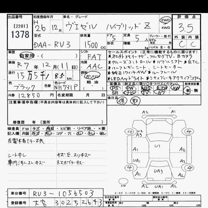 HONDA VEZEL 2014 г., лот № 1378