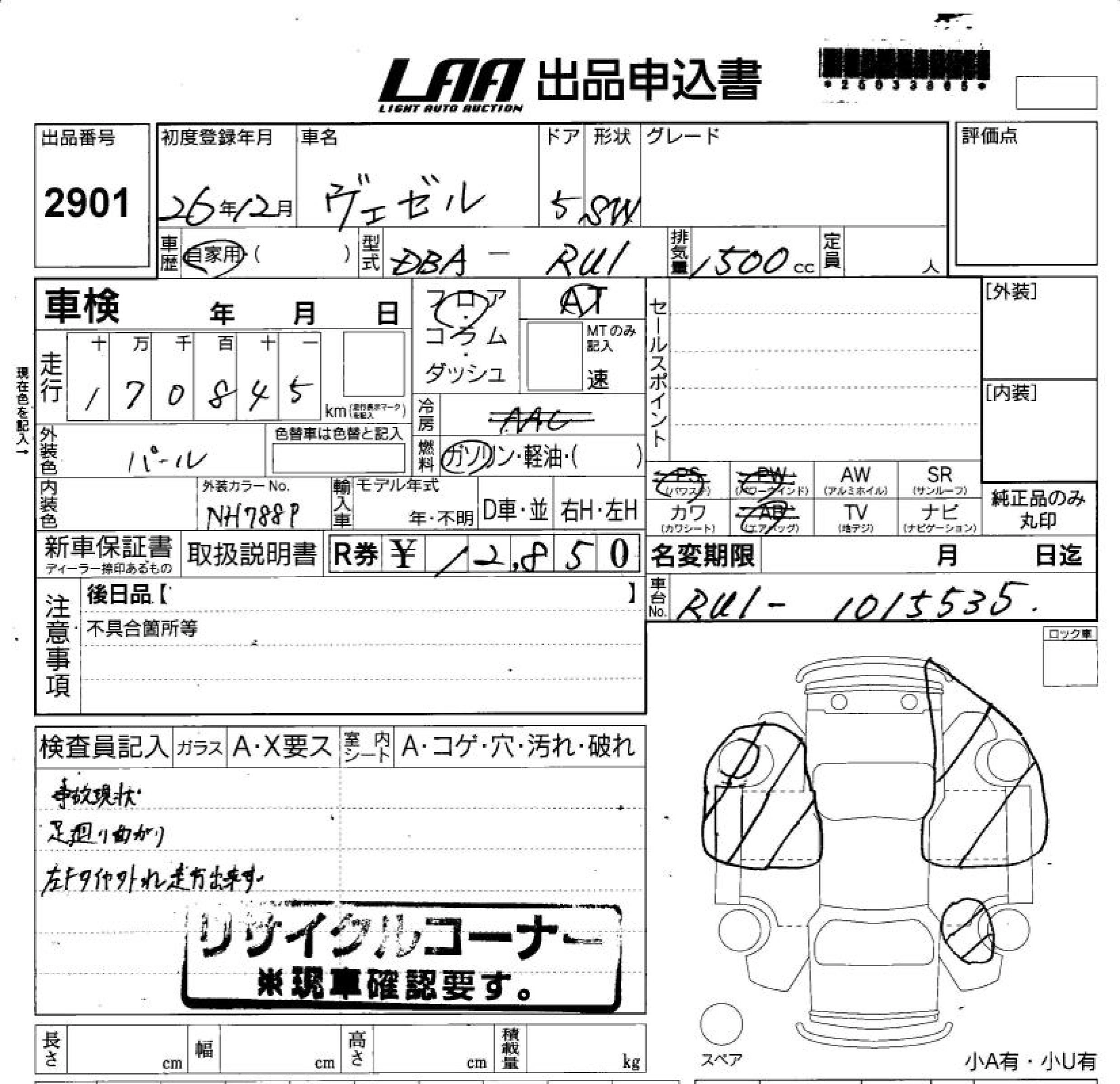 HONDA VEZEL 2014 г., лот № 2901