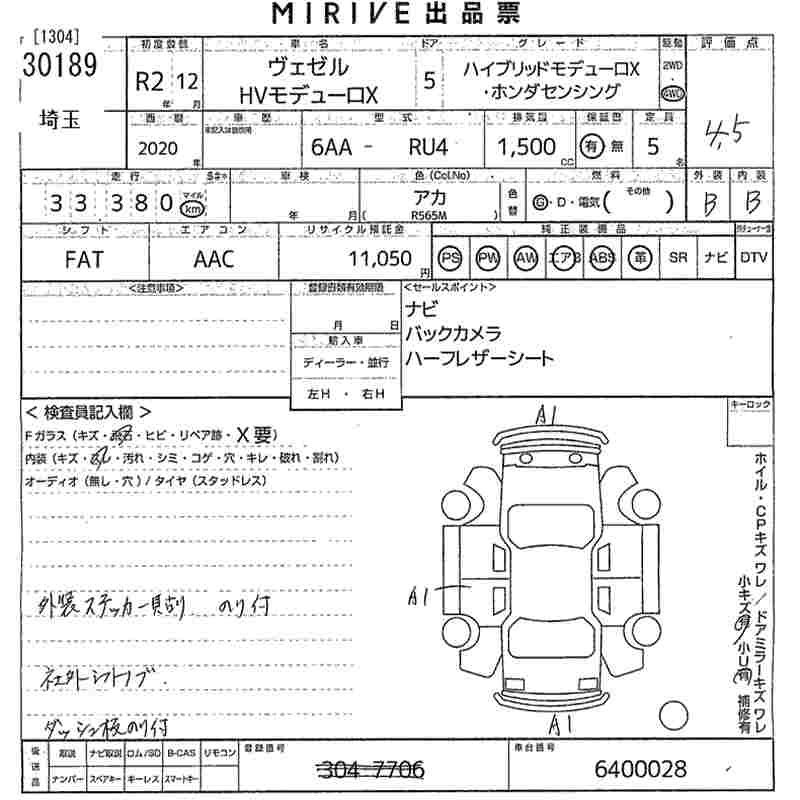 HONDA VEZEL 2020 г., лот № 30189