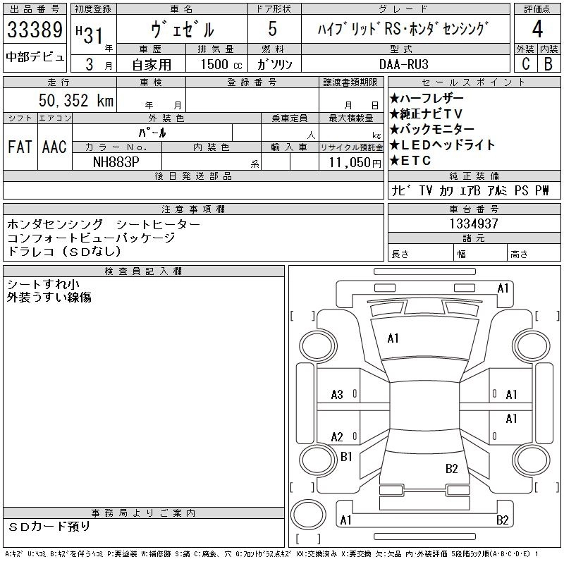 HONDA VEZEL 2019 г., лот № 33389
