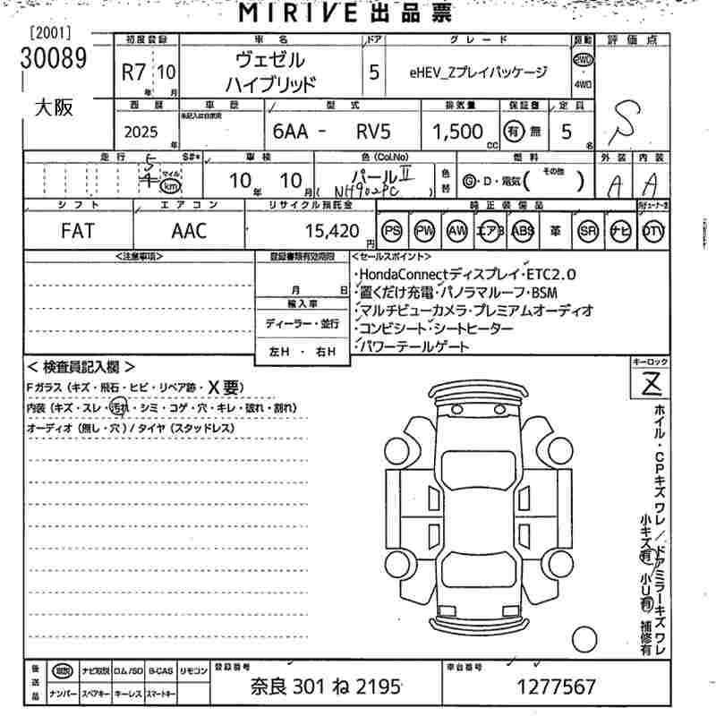 Статус продан Лот 30089 Аукцион MIRIVE Osaka Дата аукциона 06.11.2025