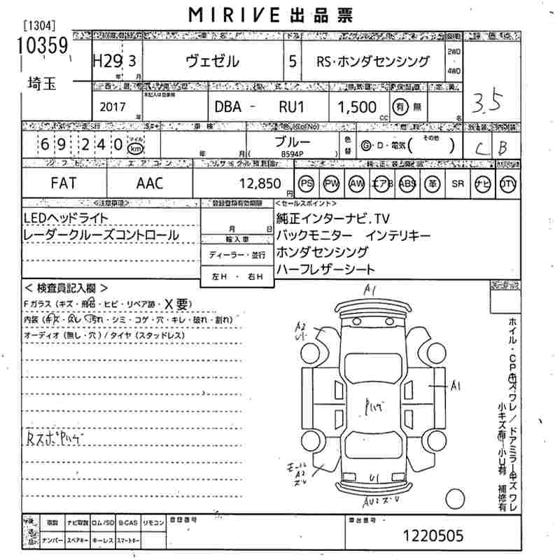 Статус выставлен на аукцион Лот 10359 Аукцион MIRIVE Saitama Дата аукциона 05.11.2025