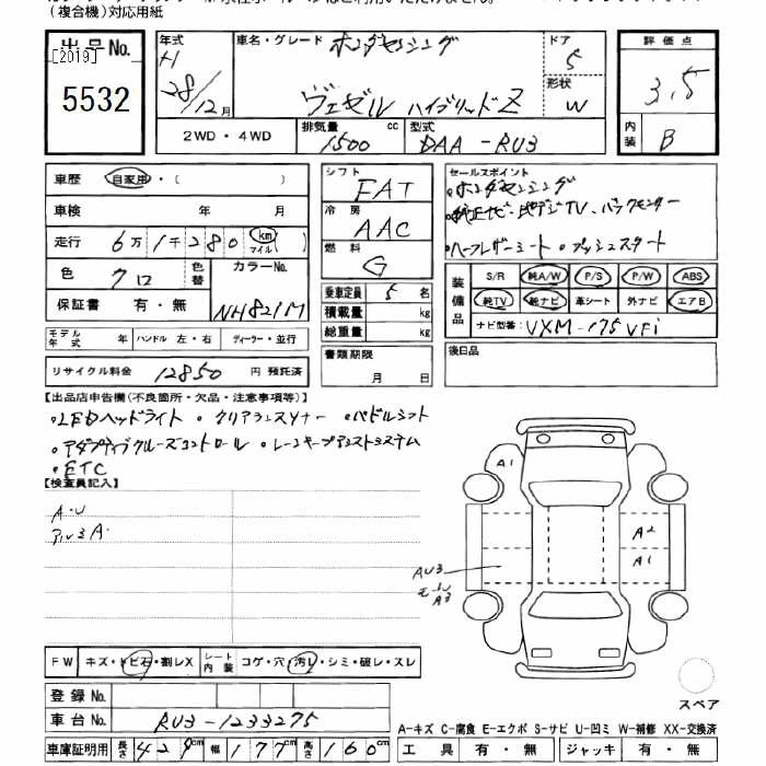 HONDA VEZEL 2016 г., лот № 5532