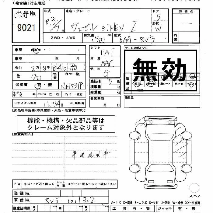HONDA VEZEL 2021 г., лот № 9021