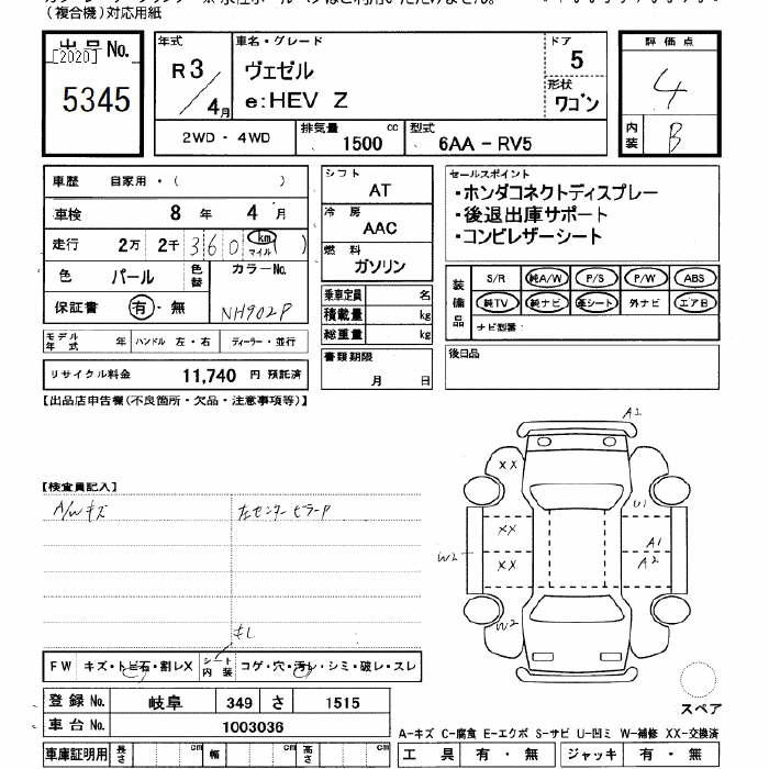 HONDA VEZEL 2021 г., лот № 5345