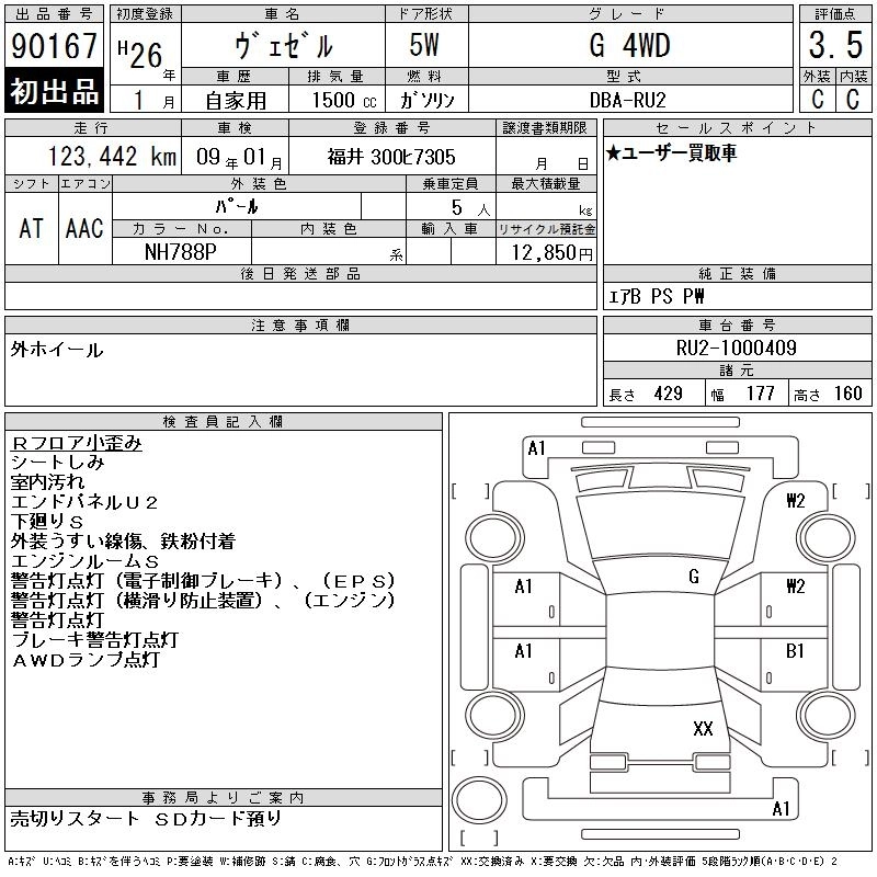 HONDA VEZEL 2014 г., лот № 90167