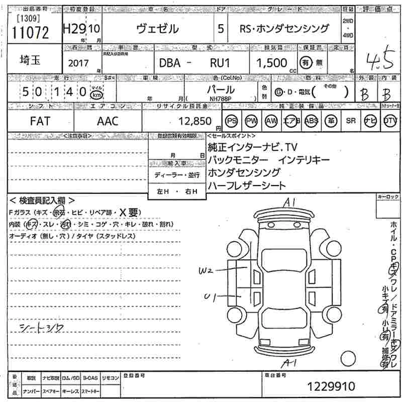 HONDA VEZEL 2017 г., лот № 11072
