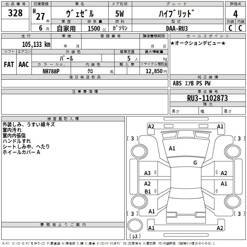 HONDA VEZEL 2015 г., лот № 328