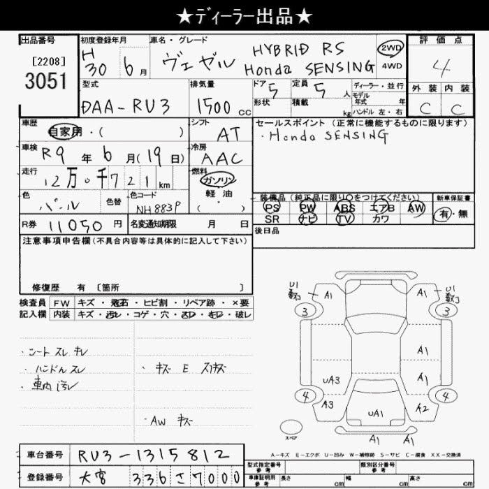 HONDA VEZEL 2018 г., лот № 3051