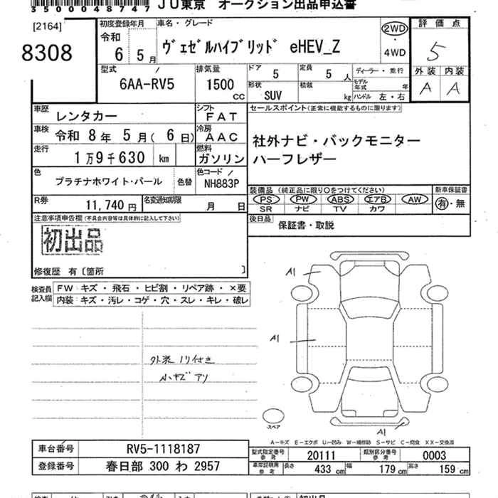 HONDA VEZEL 2024 г., лот № 8308