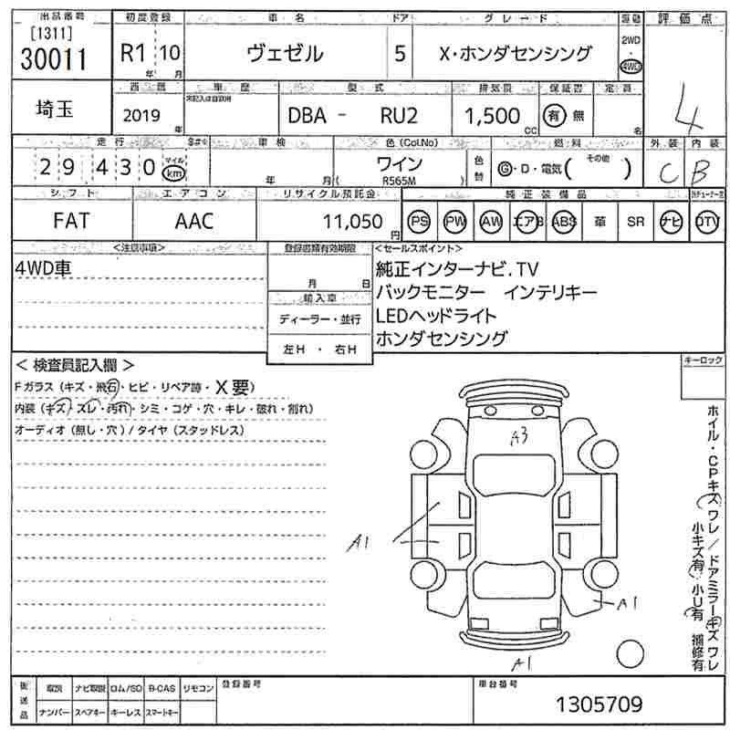 HONDA VEZEL 2019 г., лот № 30011