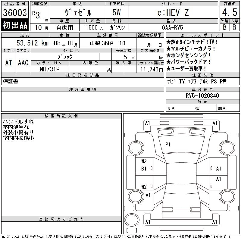 HONDA VEZEL 2021 г., лот № 36003