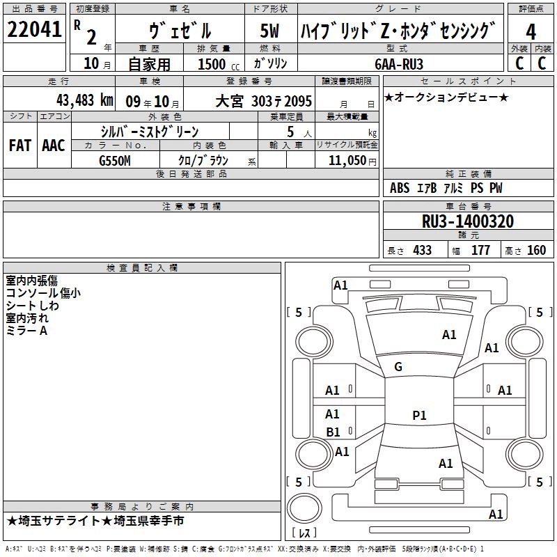 HONDA VEZEL 2020 г., лот № 22041