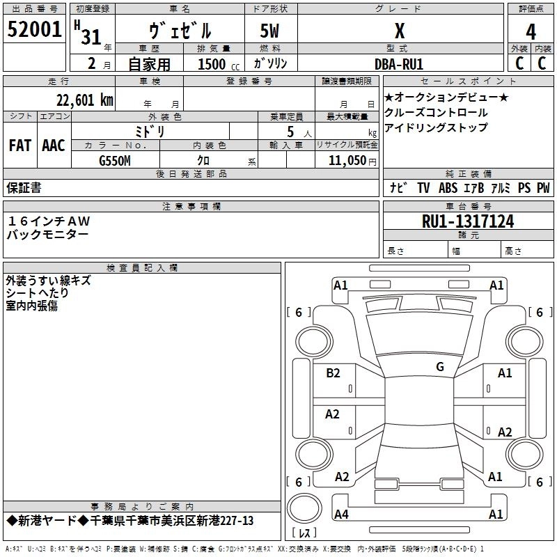 HONDA VEZEL 2019 г., лот № 52001