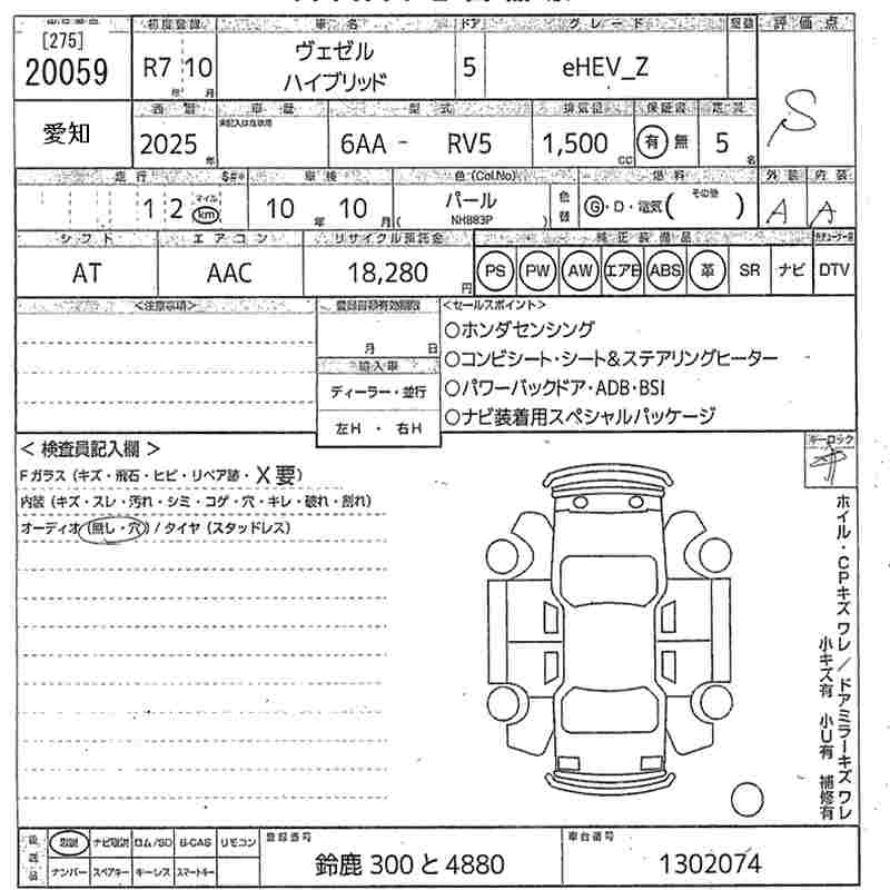HONDA VEZEL 2025 г., лот № 20059