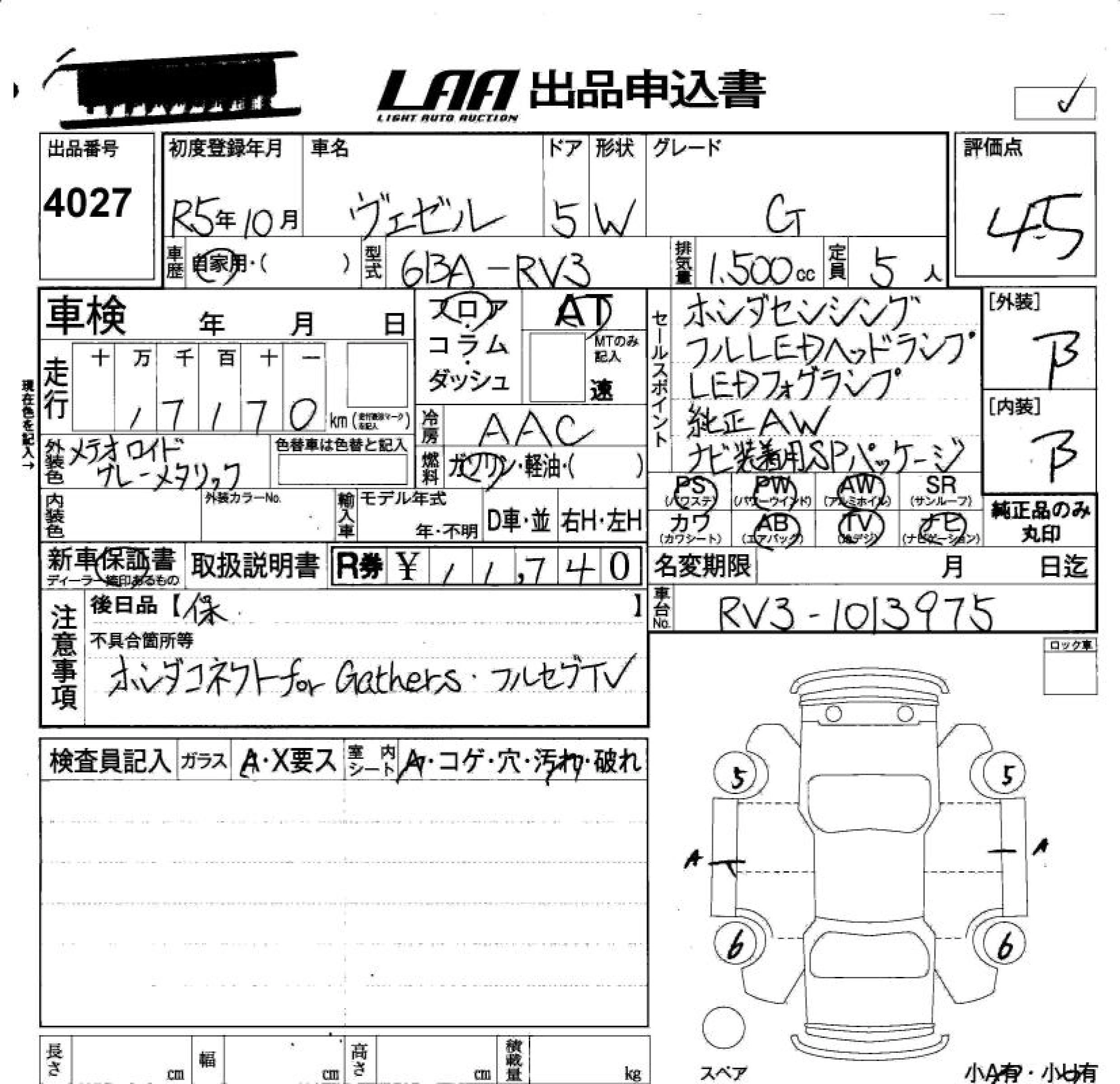 HONDA VEZEL 2023 г., лот № 4027