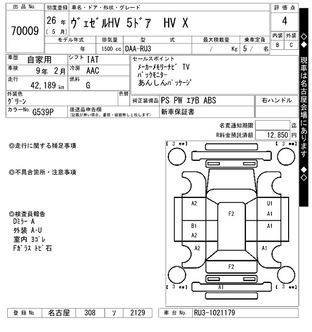 HONDA VEZEL 2014 г., лот № 70009
