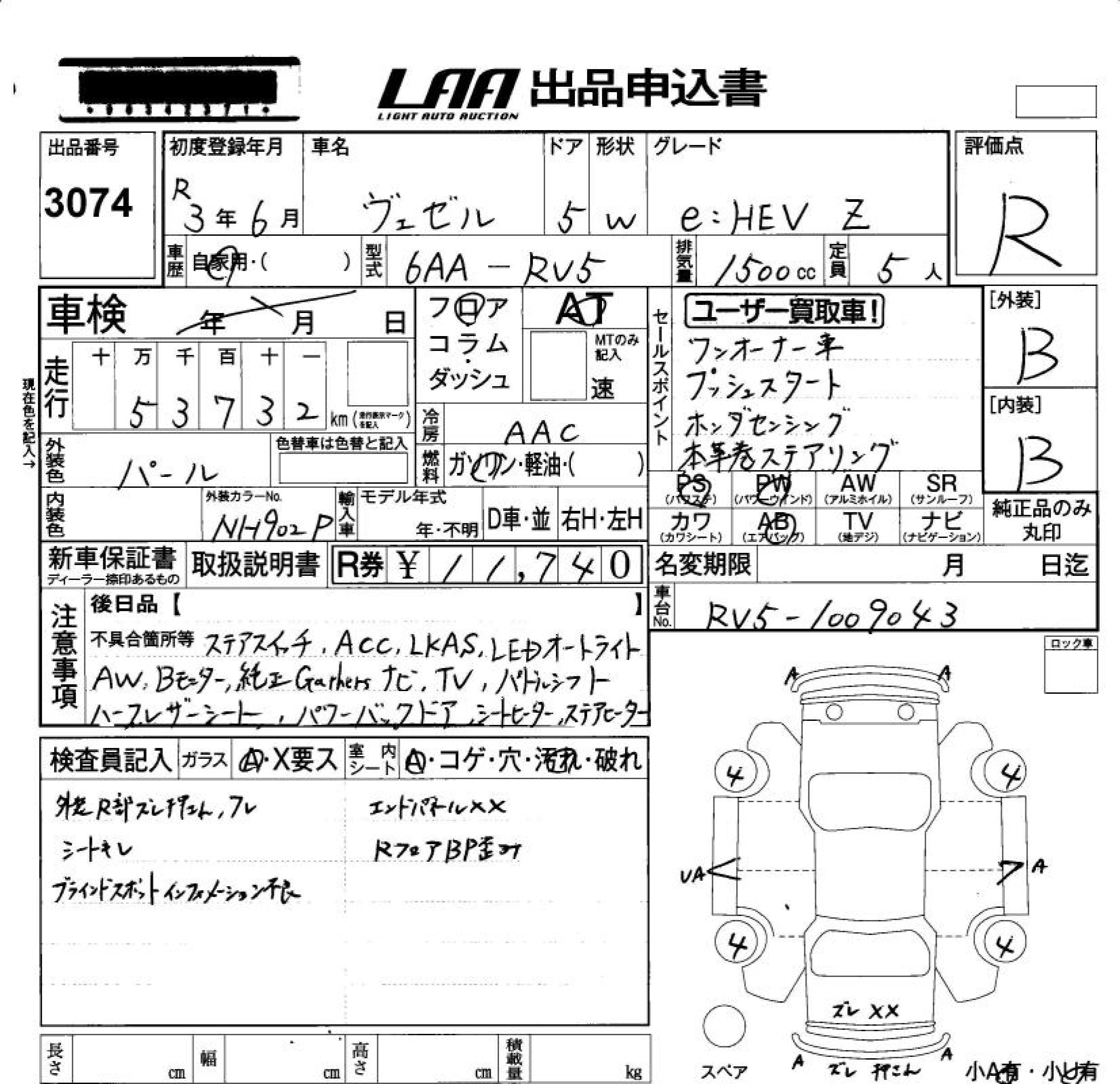 HONDA VEZEL 2021 г., лот № 3074