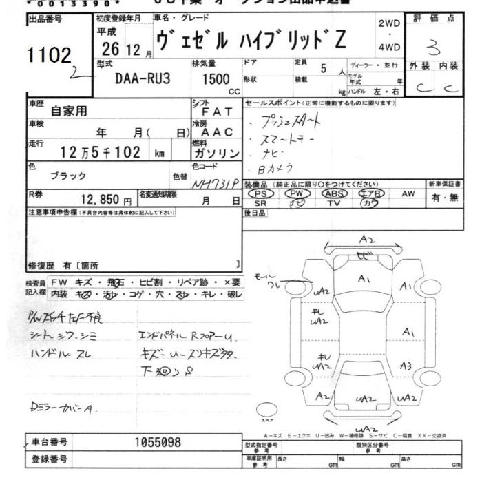 HONDA VEZEL 2014 г., лот № 1102