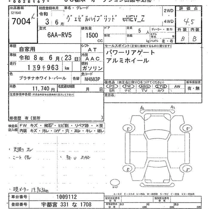 HONDA VEZEL 2021 г., лот № 7004