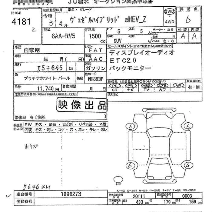 HONDA VEZEL 2021 г., лот № 4181