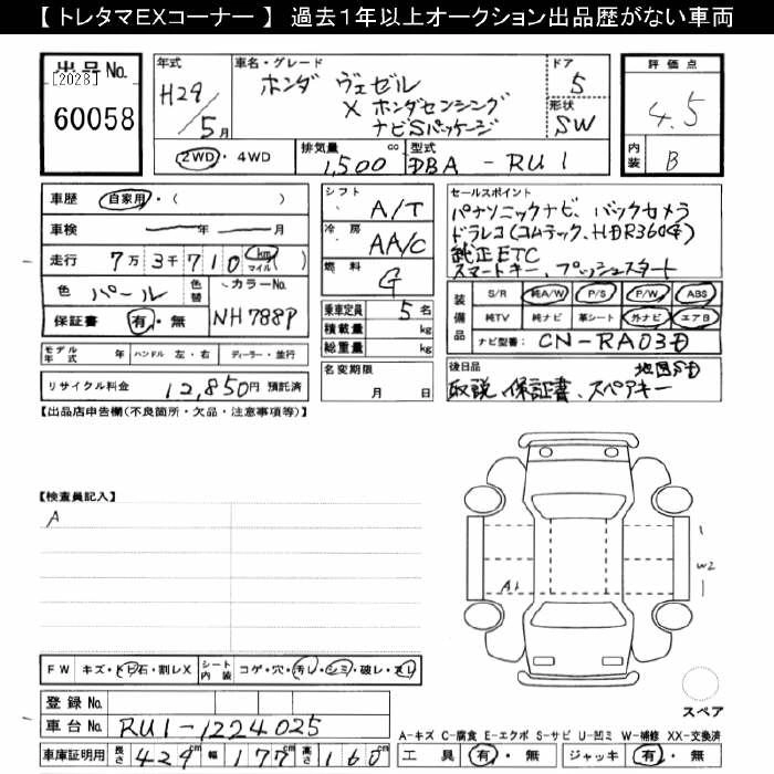 HONDA VEZEL 2017 г., лот № 60058