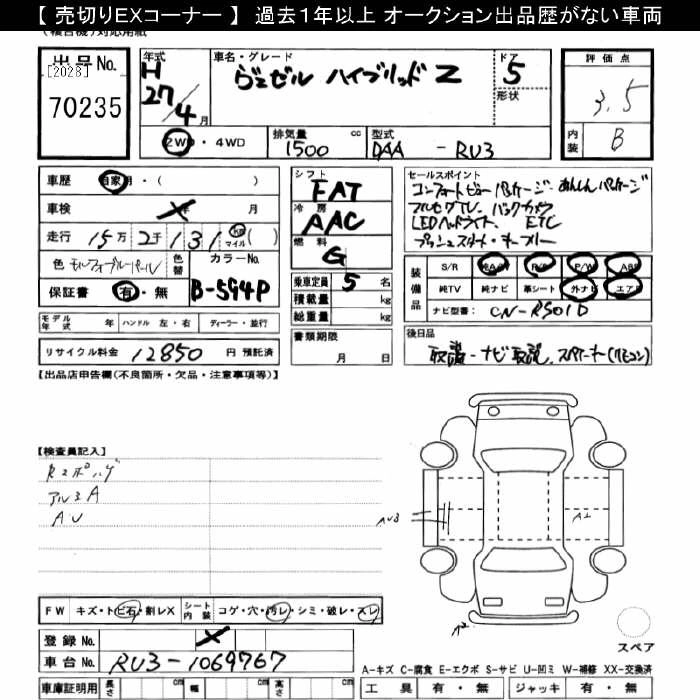 HONDA VEZEL 2015 г., лот № 70235