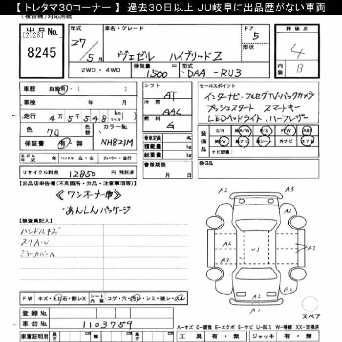 HONDA VEZEL 2015 г., лот № 8245
