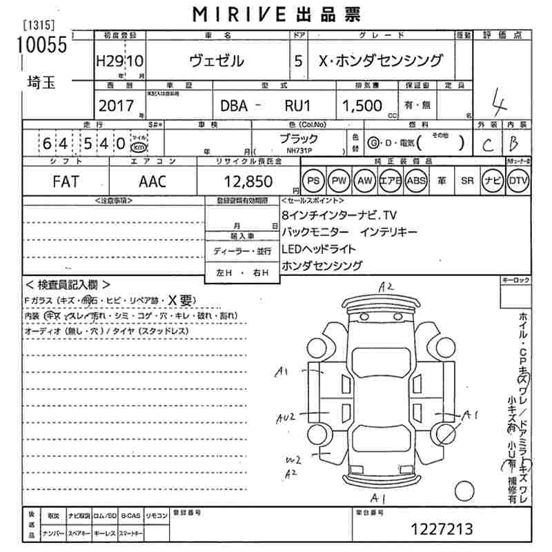HONDA VEZEL 2017 г., лот № 10055