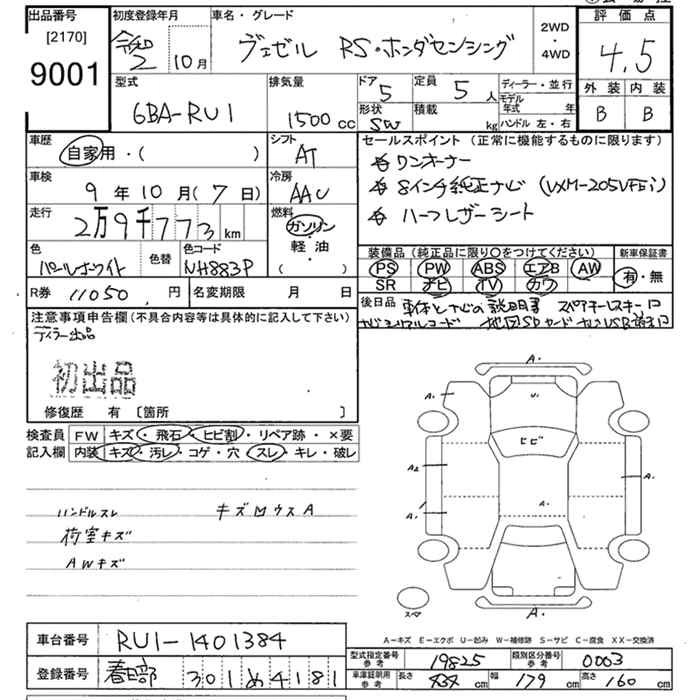 HONDA VEZEL 2020 г., лот № 9001