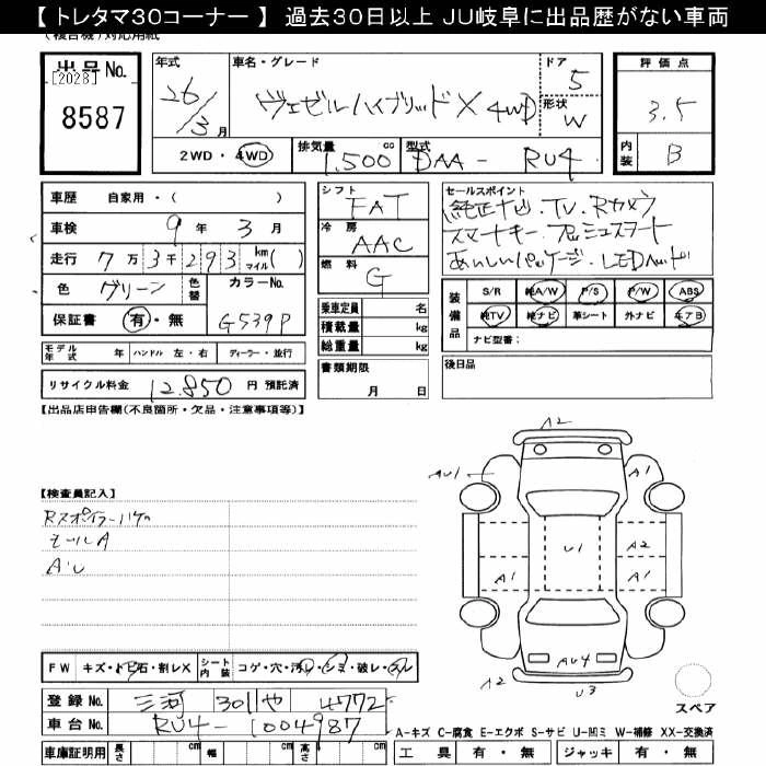 HONDA VEZEL 2014 г., лот № 8587