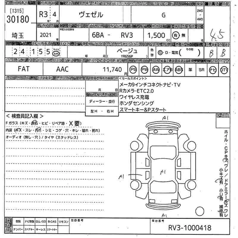 HONDA VEZEL 2021 г., лот № 30180