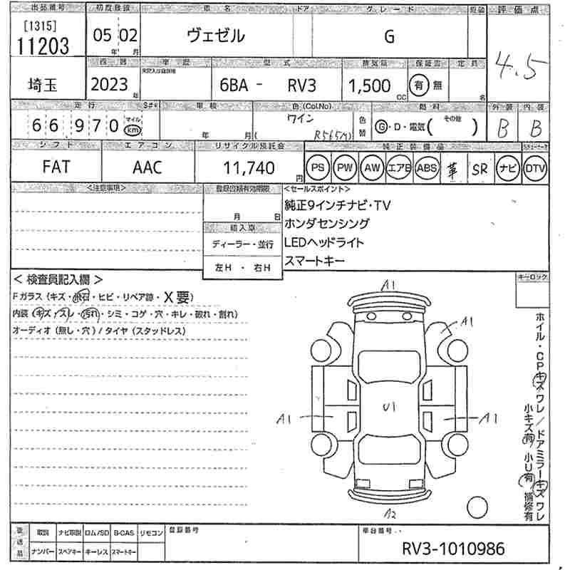 HONDA VEZEL 2023 г., лот № 11203