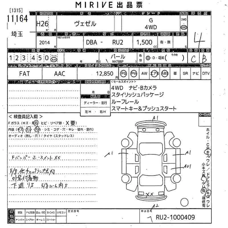 HONDA VEZEL 2014 г., лот № 11164
