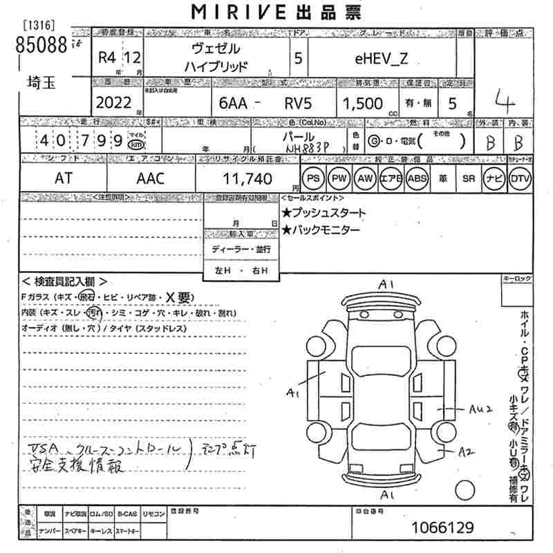 HONDA VEZEL 2022 г., лот № 85088