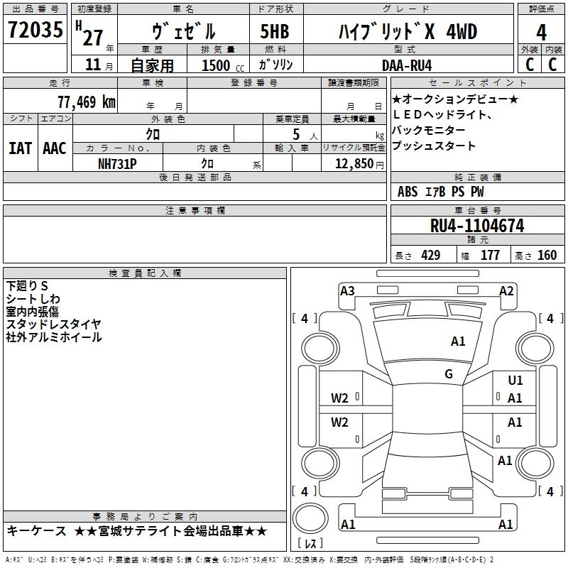 HONDA VEZEL 2015 г., лот № 72035