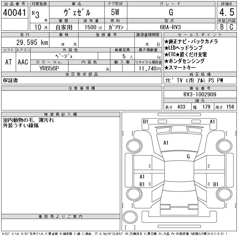HONDA VEZEL 2021 г., лот № 40041