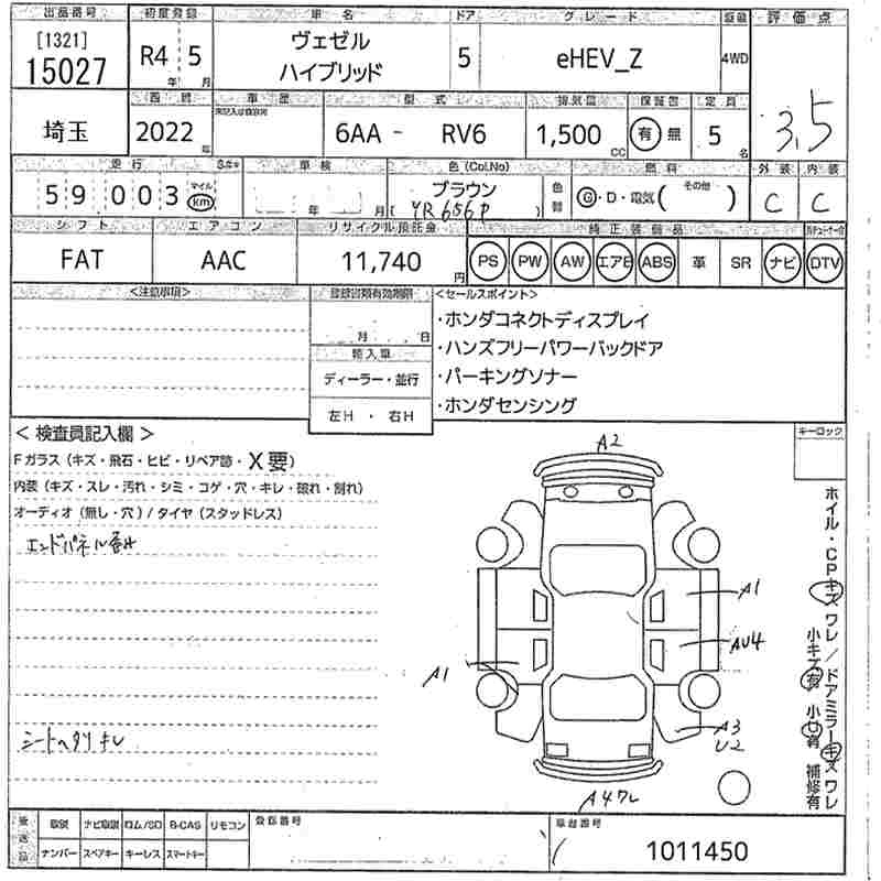 HONDA VEZEL 2022 г., лот № 15027