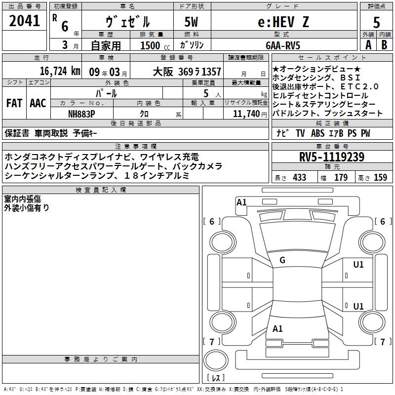 HONDA VEZEL 2024 г., лот № 2041