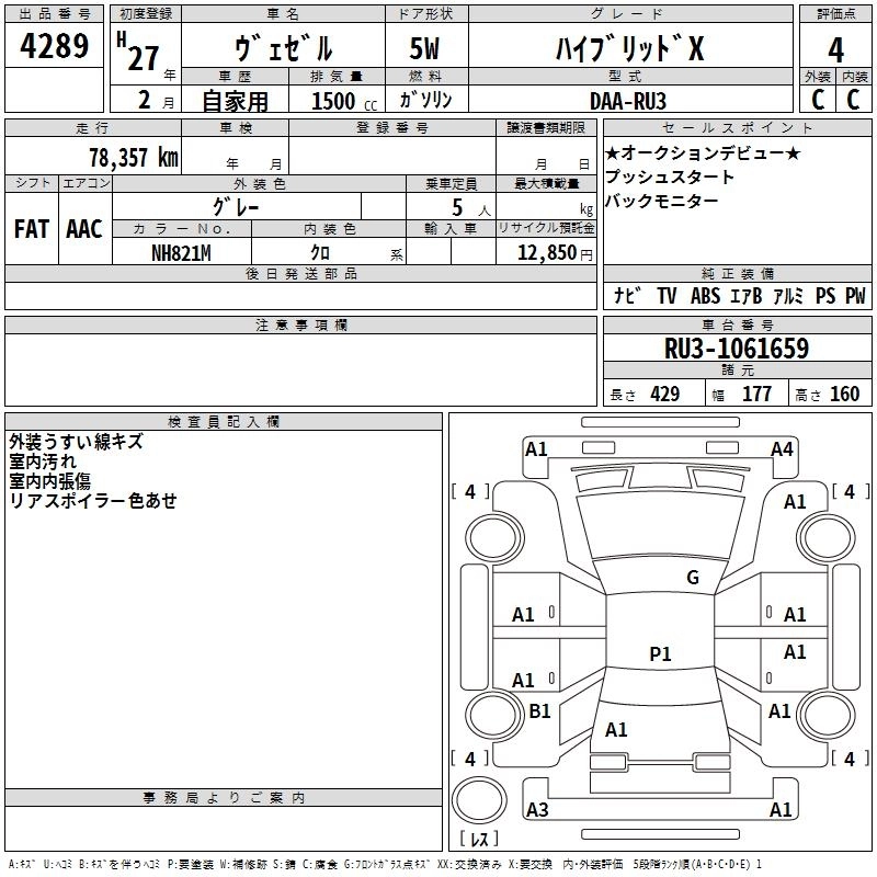 HONDA VEZEL 2015 г., лот № 4289