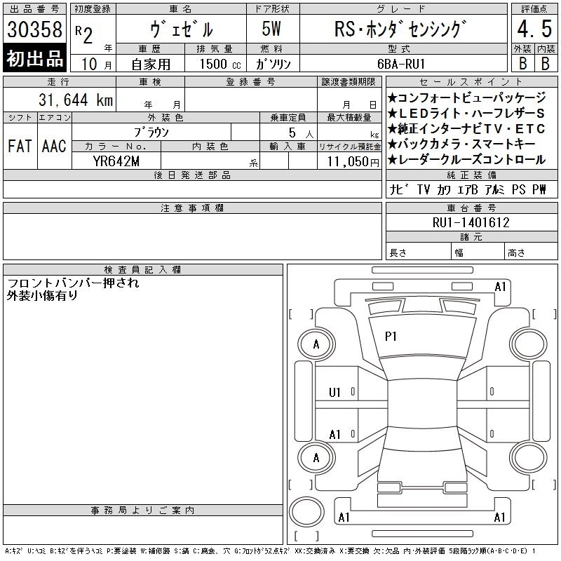 HONDA VEZEL 2020 г., лот № 30358
