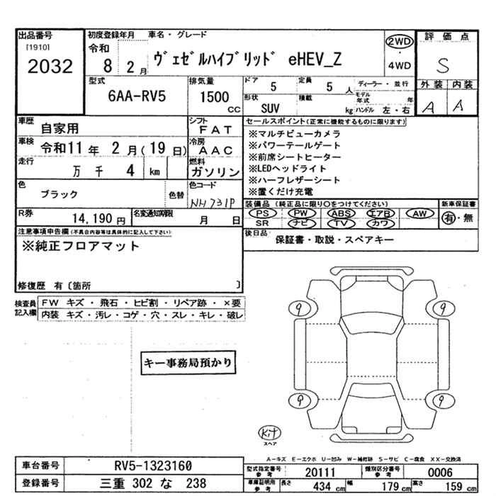 HONDA VEZEL 2026 г., лот № 2032