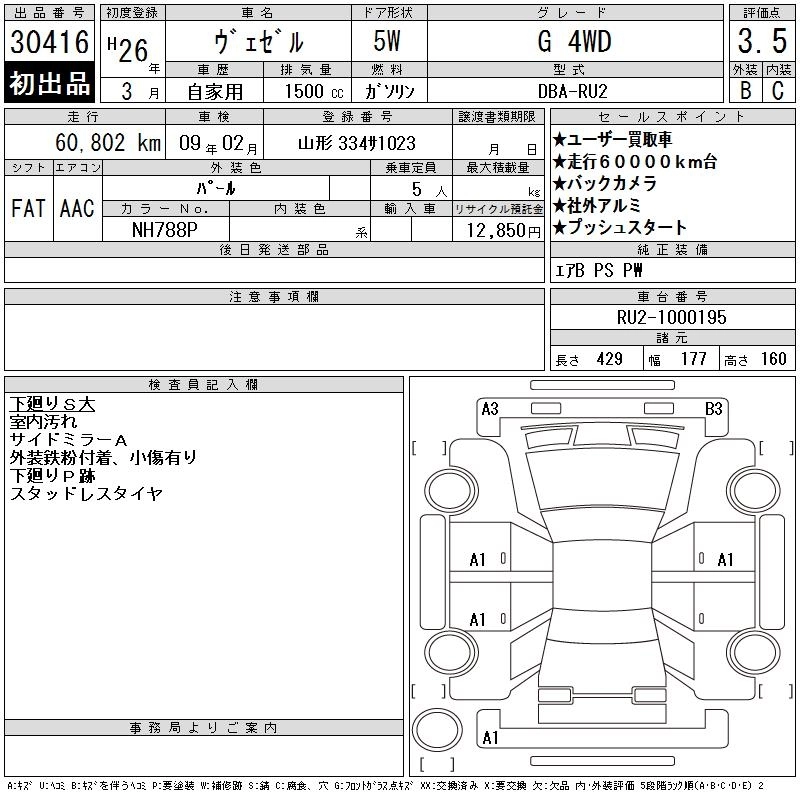 HONDA VEZEL 2014 г., лот № 30416