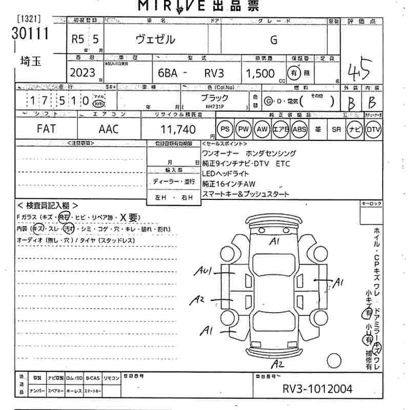 HONDA VEZEL 2023 г., лот № 30111