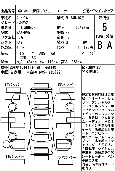 HONDA VEZEL 2024 г., лот № 60144